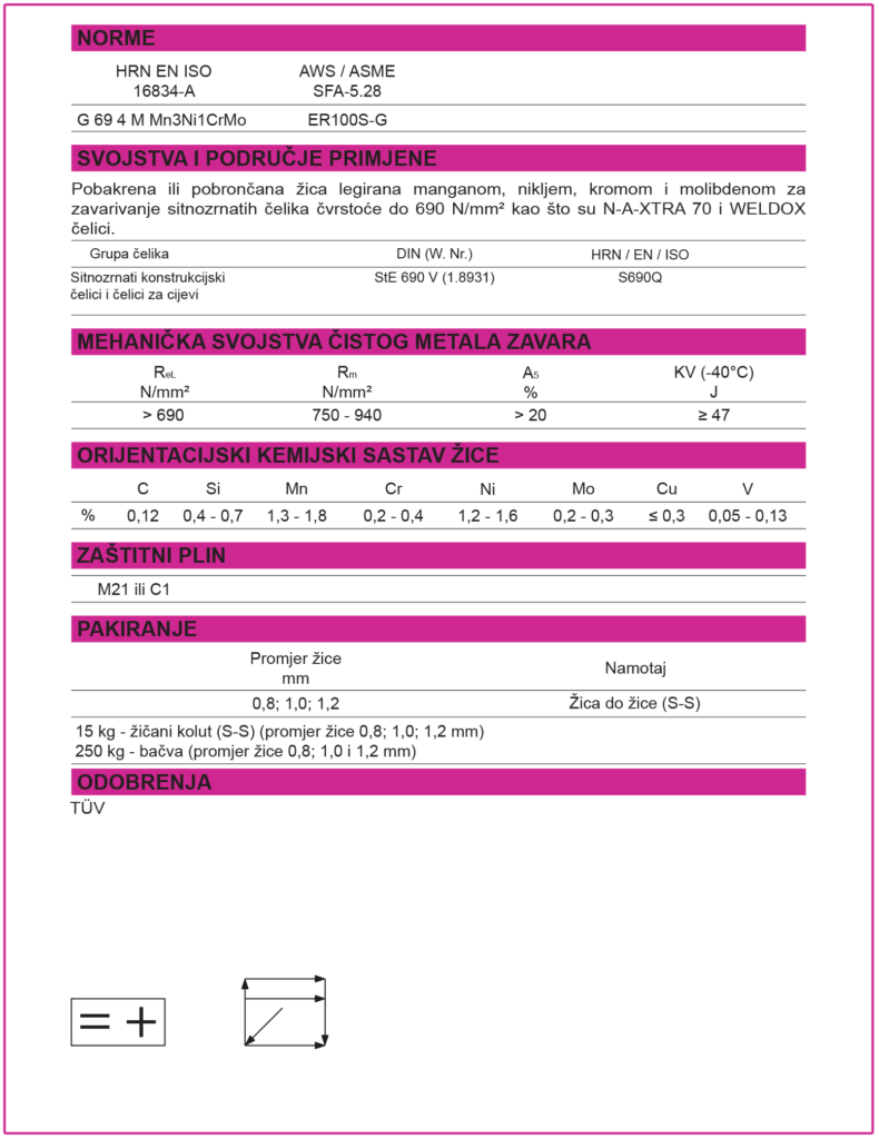 Pobakarna žica legirana manganom, nikljem, hromom i molidbenom za zavarivanje sitnozrnastih celika cvrstoce do 690 N/mm2 kao sto su N-A-XTRA 70 i WELDOX čelici.