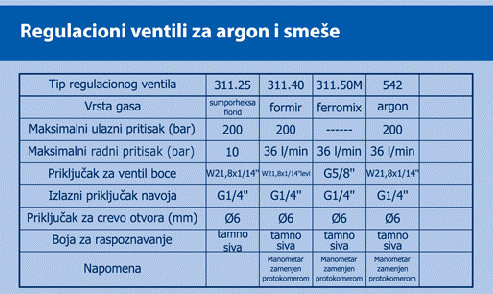 Regulacioni ventili za argon i smješe specifikacija